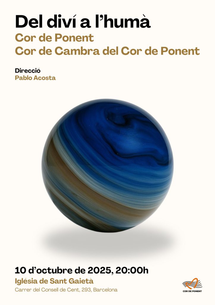 El proper 10 d’octubre de 2025, el Cor de Ponent canta a Barcelona “Del diví a l’humà” un concert que proposa un viatge musical que travessa segles d’història, des de la mística de l’Edat Mitjana fins a les emocions més terrenals del segle XX.